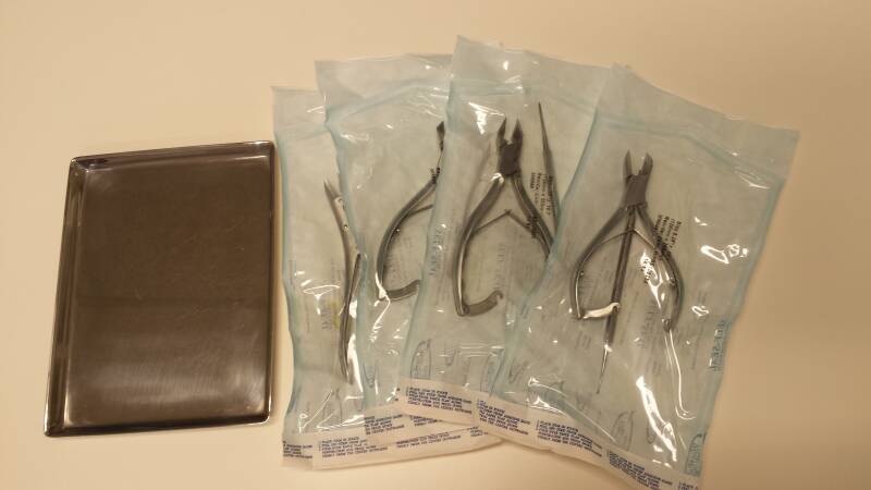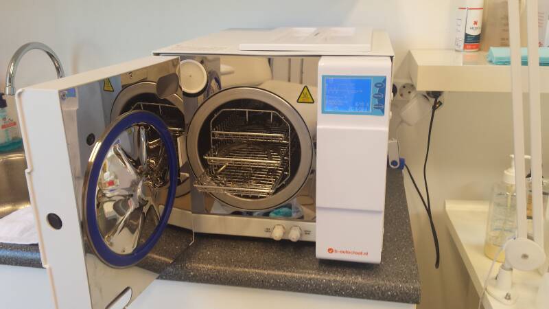 Ik gebruik uitsluitend steriele instrumenten. Eerst maak ik er sets van en vervolgens gaan de sets inclusief de verpakking in de autoclaaf. Zo is er voor iedereen, bij elke behandeling een steriele set beschikbaar.Schoner kan het niet.